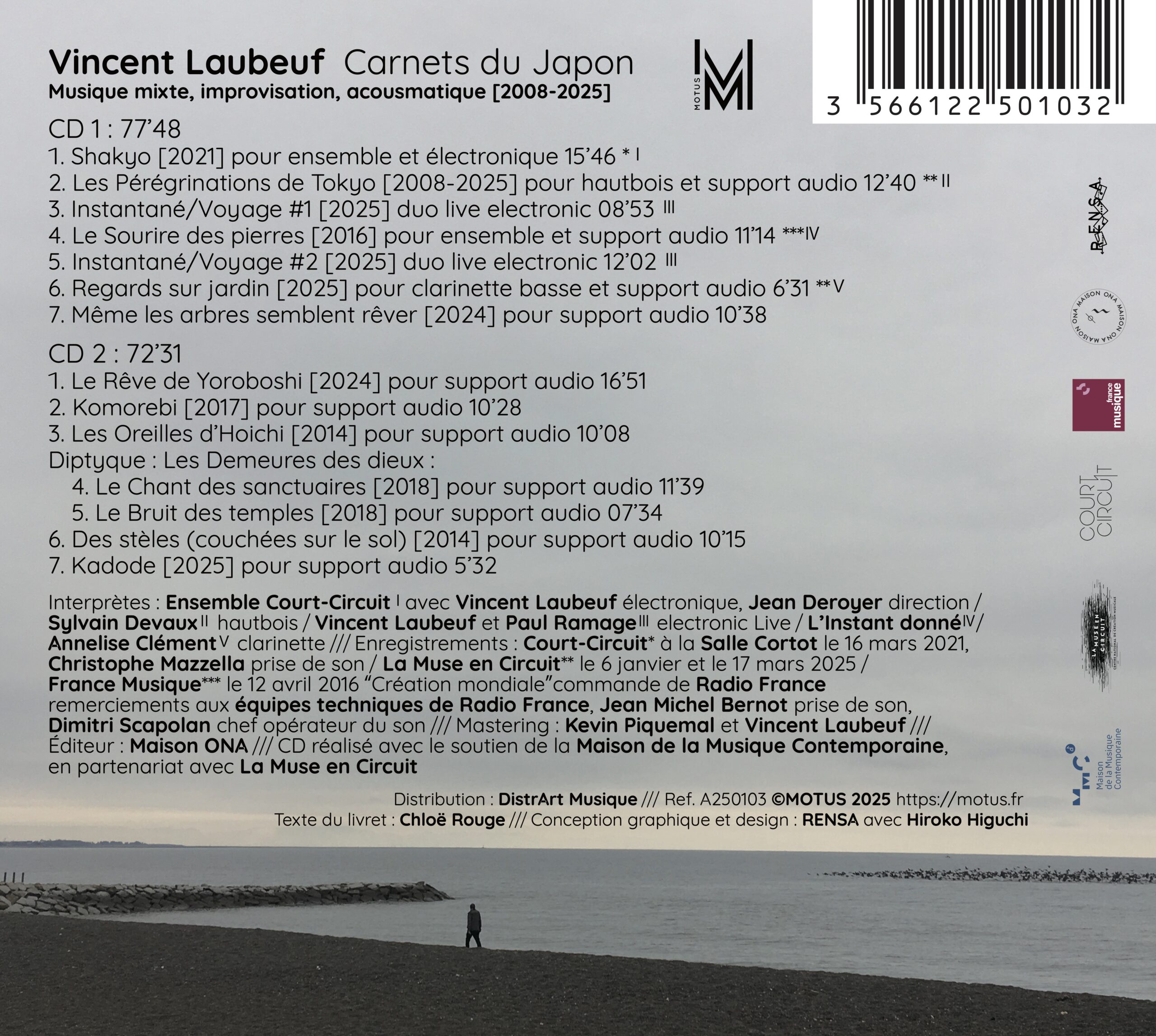 Motus va sortir à l’automne 2025, un double-CD pour célébrer les 50 ans du compositeur Vincent Laubeuf. Ce double-CD retrace ses créations musicales autour du thème Japon, de ses premières compositions sur ce sujet à nos jours.